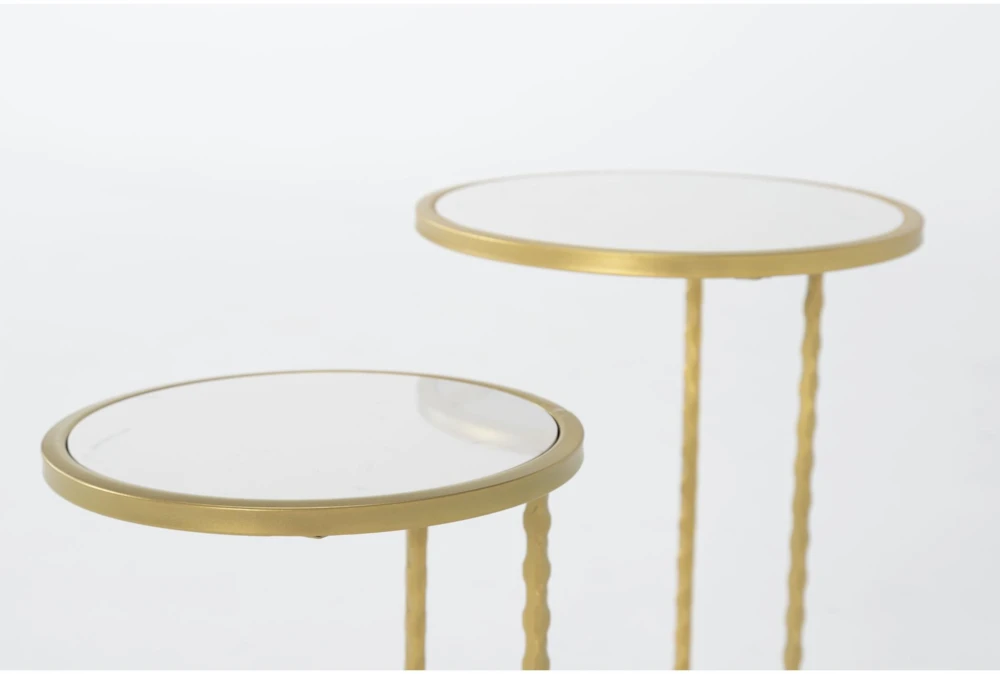 Get twice the elegance and efficiency with our 2-piece Metal and Marble side tables. This set includes 2 designs that mix materials beautifully and blend in traditional-style spaces seamlessly. Part of our Newport Estates Accents collection, these petite pieces feature classic lines and graceful details that ensure they�ll look perfect pulled up to your stately sofa or chair.