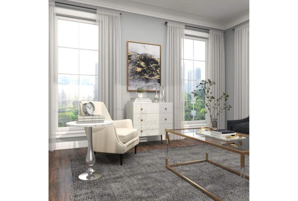 This 20 inch round accent table boasts a timeless design with a smooth marble top and traditional pedestal base. Made of solid aluminum and finished in silver, it adds a refined touch to any space.