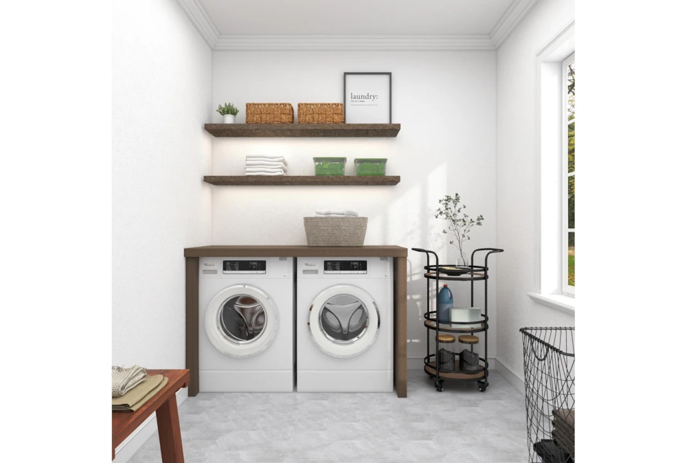 This 21 inch round iron 3 tier bar cart is perfect for small spaces and features a narrow, rolling design. Its industrial style and brown color make it a great addition to any dining room.