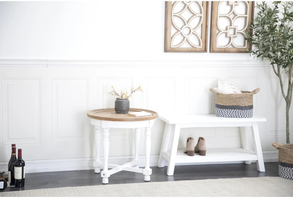 This 24 inch accent table boasts a charming farmhouse style with its white and natural weathered wood design. Crafted from high-quality wood, it’s durable and perfect for adding a touch of rustic elegance to any living space.