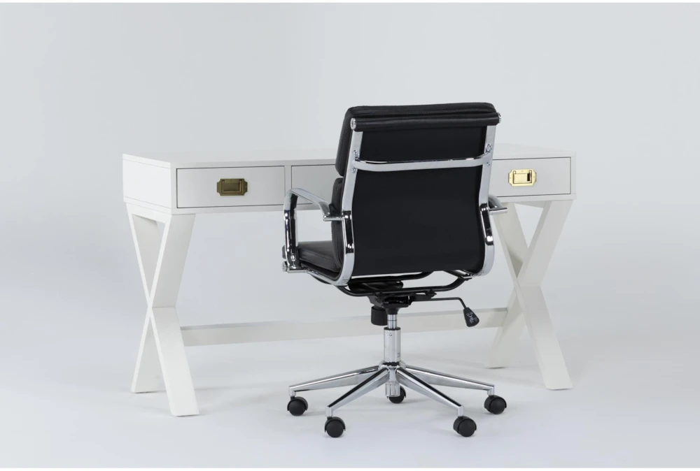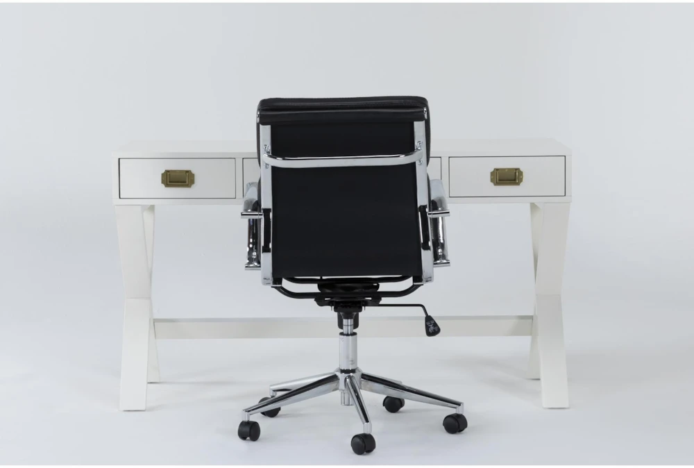 Our Adams White desk is inspired by Campaign-style designs, which were made for military campaign travel. Details like cross legs, a trestle base and recessed metal handles in matte gold are pretty and practical. This item also features solid poplar wood, a high-gloss paint finish and convenient USB ports and power outlets. Perfect for mixing and matching with other bedroom and office furniture, this piece allows you to create a truly custom space.