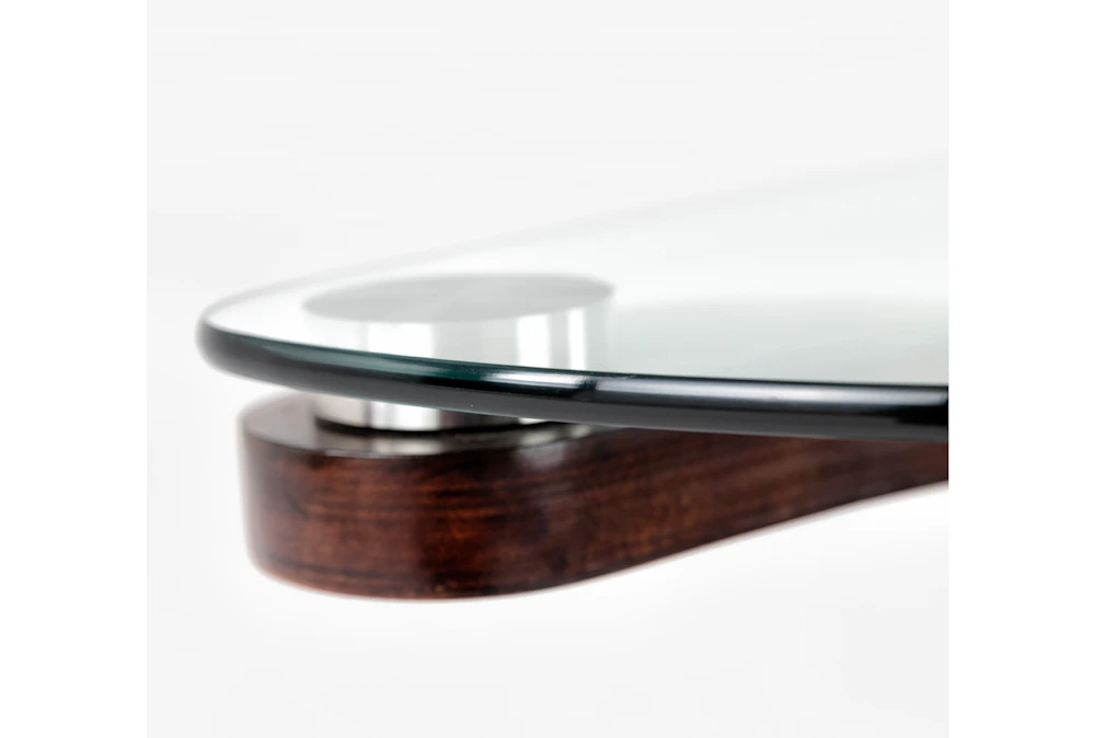If you gravitate towards furniture that could function as art, our Allure sofa table will impress and excite you. A layer of clear glass looks through to the sculptural base, which is composed of curved hardwood and veneer legs in a smooth hazelnut finish. Incorporate this piece in your interior, and let it serve as a foundation for conversation.