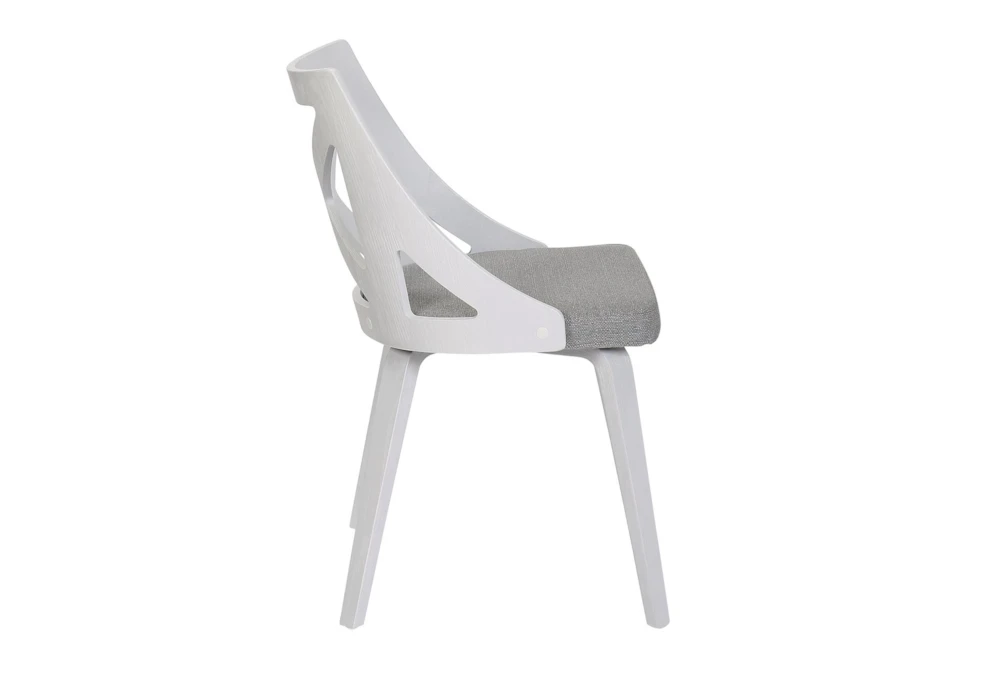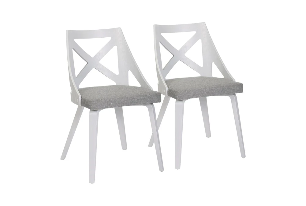 The Ashton White Textured Wood and Light Grey Fabric Dining Chair Set Of 2 is a stylish and modern addition to any dining room. With foam cushions for added comfort, this armless set is made of durable polyester material.