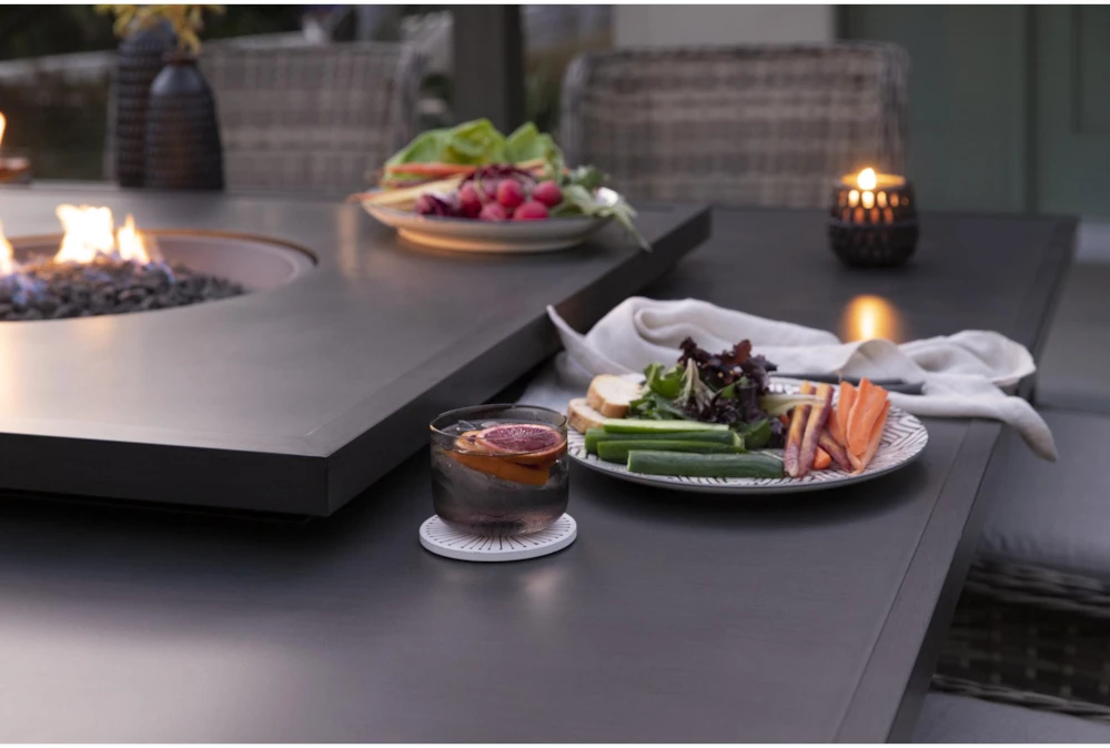 You’re going to wish you could spend all day, every day outdoors when you experience the comfort, quality and versatility of our Capri collection. Rust-free powder-coated aluminum frames serve as a sturdy foundation for handwoven 100% recyclable resin wicker. Made to mimic the look and feel of natural wicker, this synthetic version is actually more durable, easy-to-maintain, and weather resistant. A unique and flexible offering, the firepit bar table boasts a modular design that can be configured in a variety of ways.