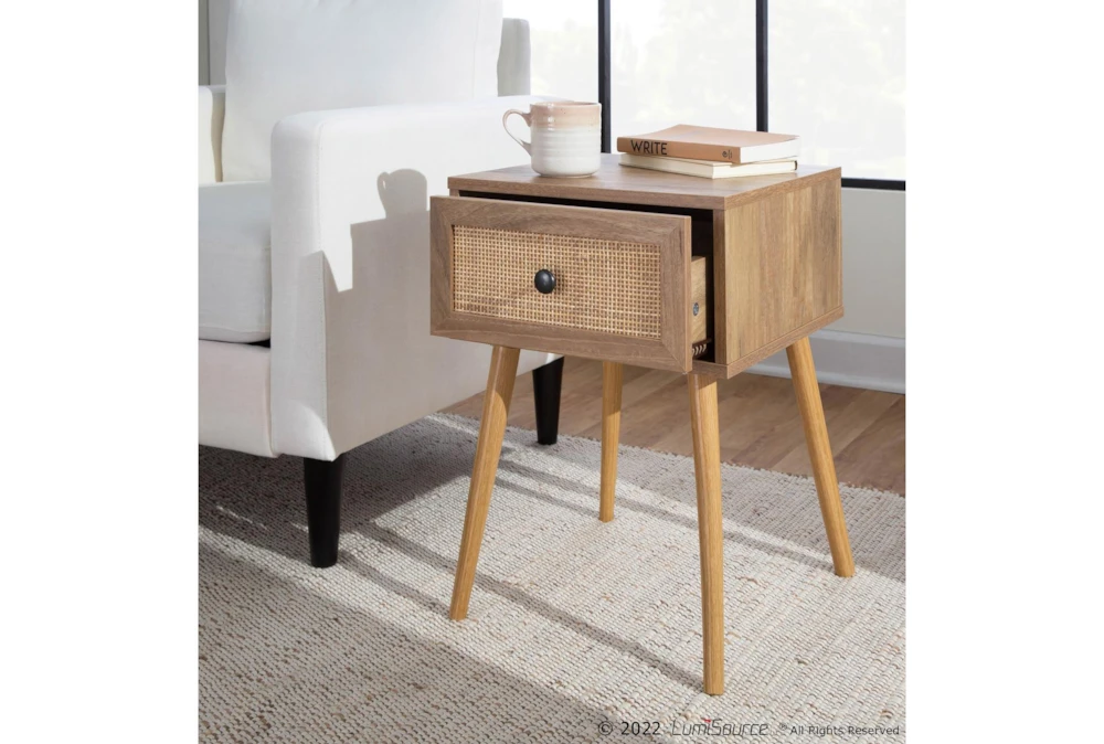 The Carla Natural End Table is a perfect addition to any modern living room, featuring both storage and drawers for your convenience. Crafted from high-quality Mdf material, this end table is as stylish as it is functional, making it a must-have piece for any home.