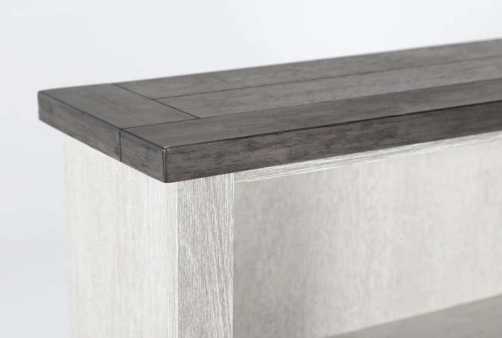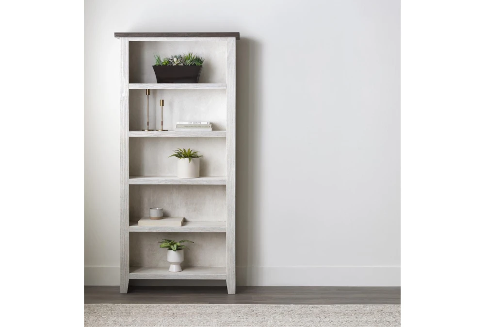 With its charming two-tone finish, our Dixon bookcase brings a touch of cottage character to your living room. Crafted with wood and veneers, this design allows you to enjoy a fresh twist on traditional taste. Its distressed white shelves store books and accents, while the planked top brings rich texture and additional surface space to display your décor.