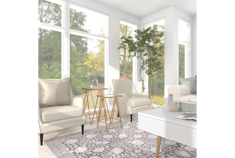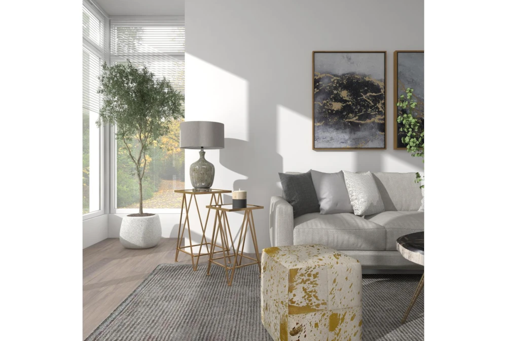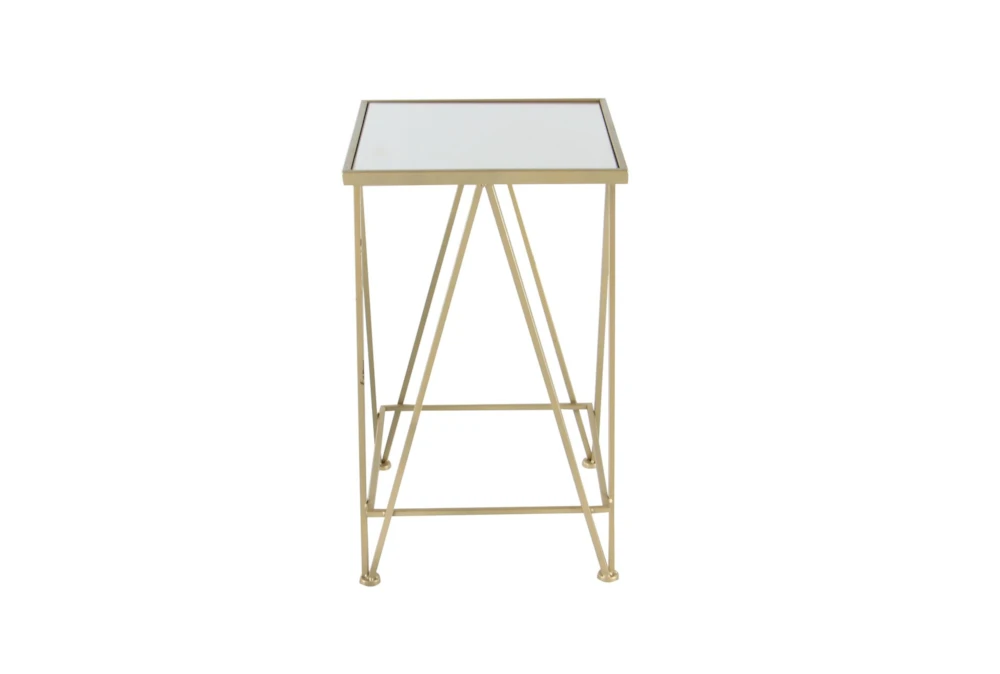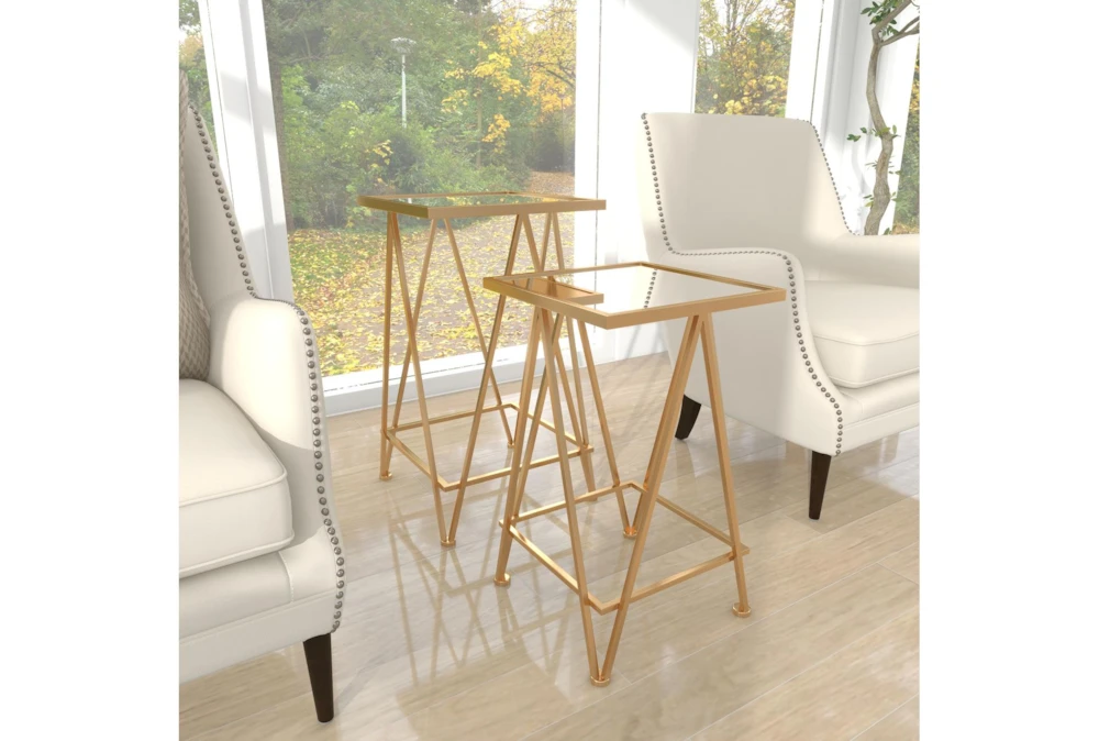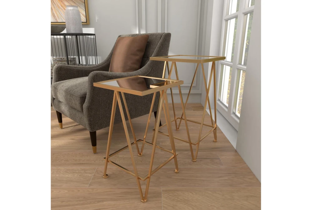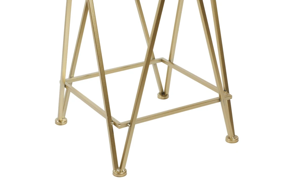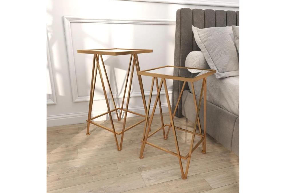 This Gold Iron Accent Table Set of 2 is the perfect addition to any contemporary space. Crafted from durable metal, this set exudes elegance and style.