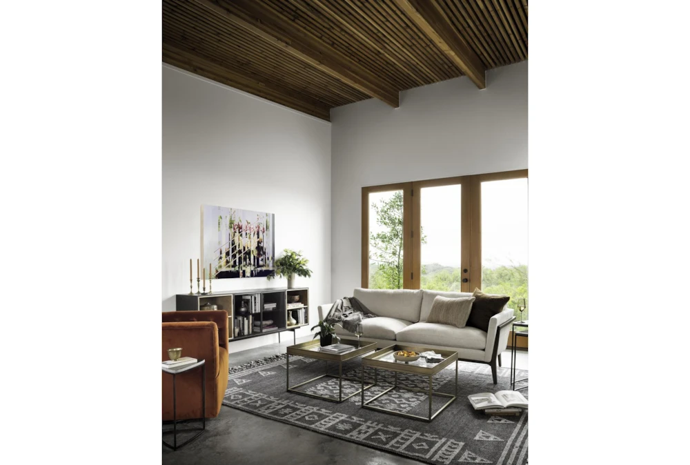 - Modern design with tufted, curved foam cushions