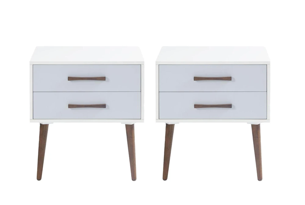 - Featuring two spacious drawers with elegant handles, this nightstand provides plenty of storage for all your bedside essentials.