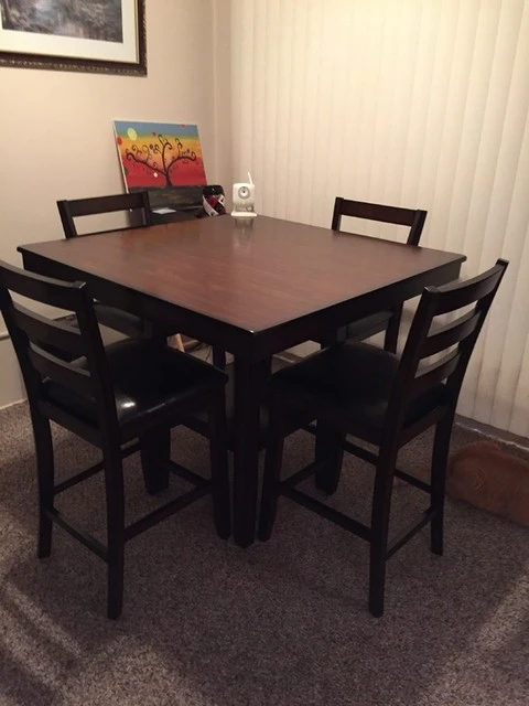 Sit high and mighty on a set meant for optimum counter dining. Not only will you relish this elevated experience, you�ll delight in the exceptional price. Decked in a dark espresso finish, these designs are crafted of hardwood and veneer. The lofty table features a square shelf where you can store entertaining essentials, and the accompanying stools boast sleek ladder backs and upholstered seats.