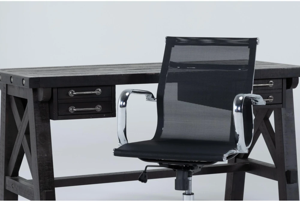 Thanks to 100% solid pine construction, the items in our Jaxon office collection are truly designed by nature. The wood’s character plays a central role in the authenticity and rustic charm of each piece, from the rugged texture, to the knots, nicks, splits and imperfections that ensure they’re one-of-a-kind. Decked in a dark cafe finish and distinguished by metal bolt detail, this handsome desk will help elevate your work space. Whether you have a strictly 9 to 5 schedule or something more flexible, our Wendell Mesh office chair is here to support you. It features a chrome-plated iron frame and mesh fabric that breathes easy, so you can too. The swivel design, caster base, gas lift and tilt lock function allow you to make any adjustment you need to work comfortably.