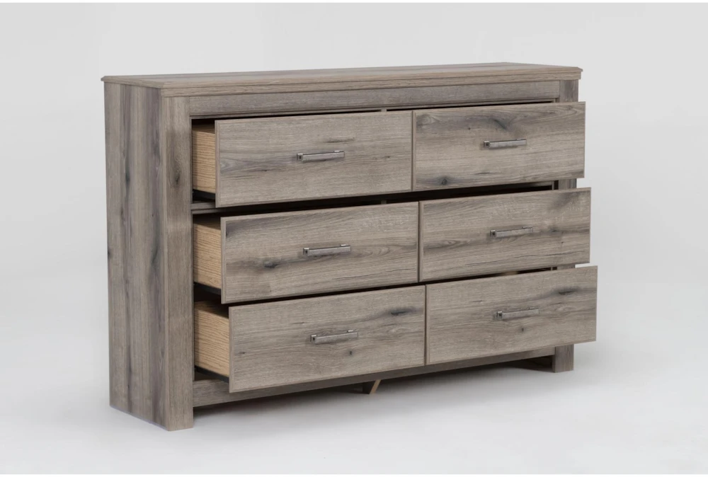 All the rustic vibes are coming at you, courtesy of our Jeraco Grey collection, which boasts rugged appeal and natural character that will enrich your bedroom. It’s easy to create a warm, cozy retreat with these pieces, which charm with a unique grey finish. Clean lines and sleek hardware keep the look simple and versatile, while storage features and a nightstand with USB ports provide function and ease.
