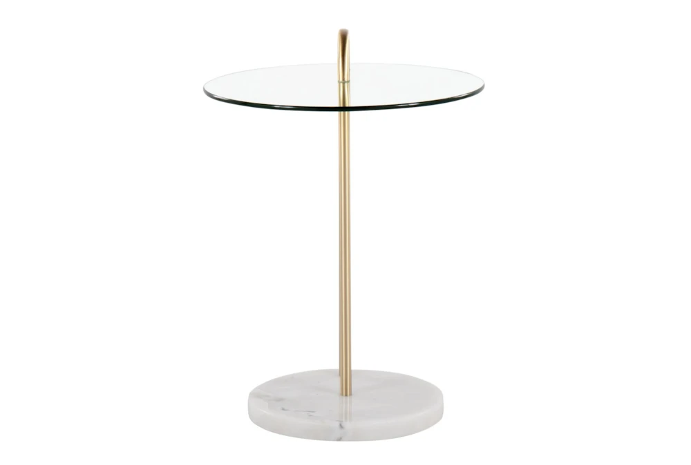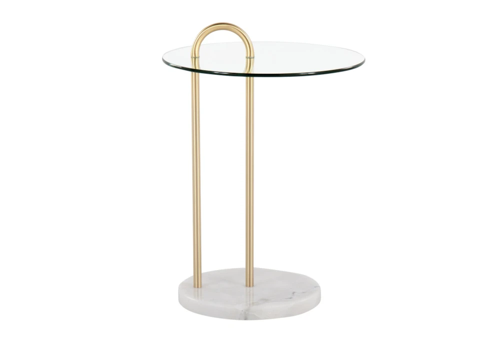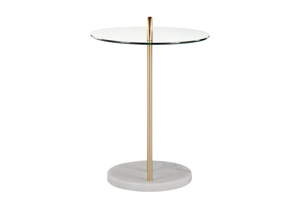 Elevate your living space with the Kate White Marble, Gold and Glass Side Table. This modern piece features a sleek metal design with a glass top, making it both stylish and functional.