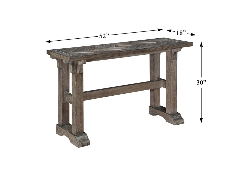This Leo Console Table boasts a rustic style with its wooden material and warm brown color, making it a perfect addition to any living room. Assembly is required, but it ships conveniently via UPS parcel shipping.