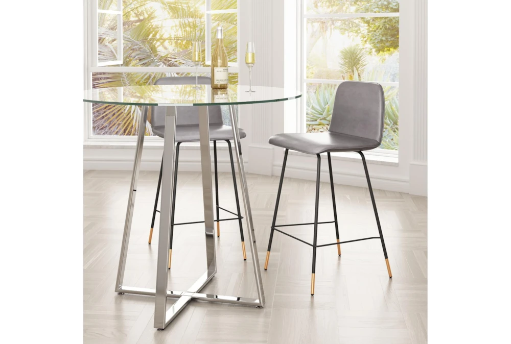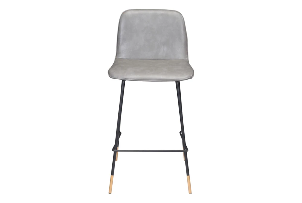The Leo Gray 27″ Bar Stool is a modern style metal stool with an armless design and a supportive back. Its grey vinyl finish complements any dining room decor, and it comes with assembly instructions and floor protectors to prevent surface scratches.
