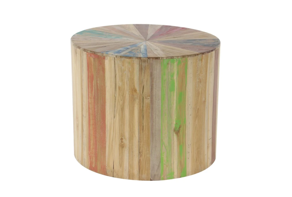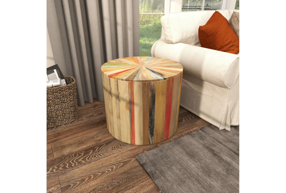 - The drum shape of this accent table adds a touch of whimsy to any room, while the light brown finish complements a variety of decor styles.