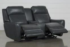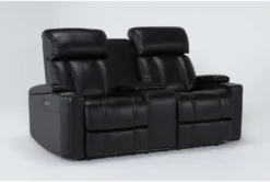 Eastwood Midnight 75″ Power Reclining Storage Console Loveseat With Power Headrest & USB
