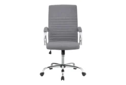 The Maurice Grey Fabric Office Chair boasts a casual style and is made of 100% polyester. It features wheels, arms, swivel, a high back, and requires assembly.