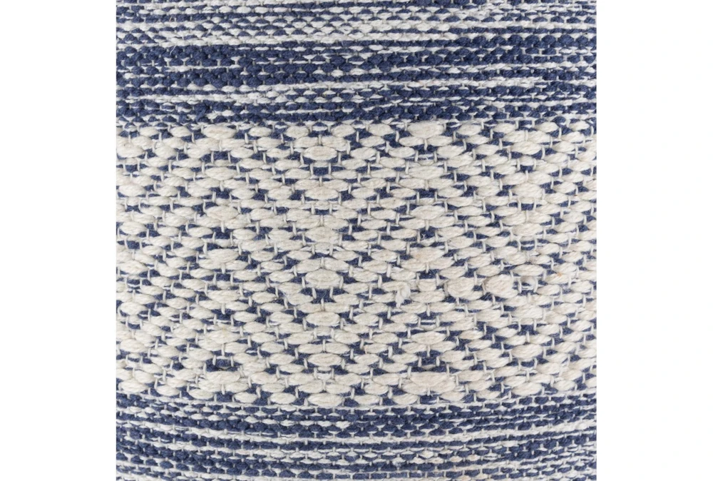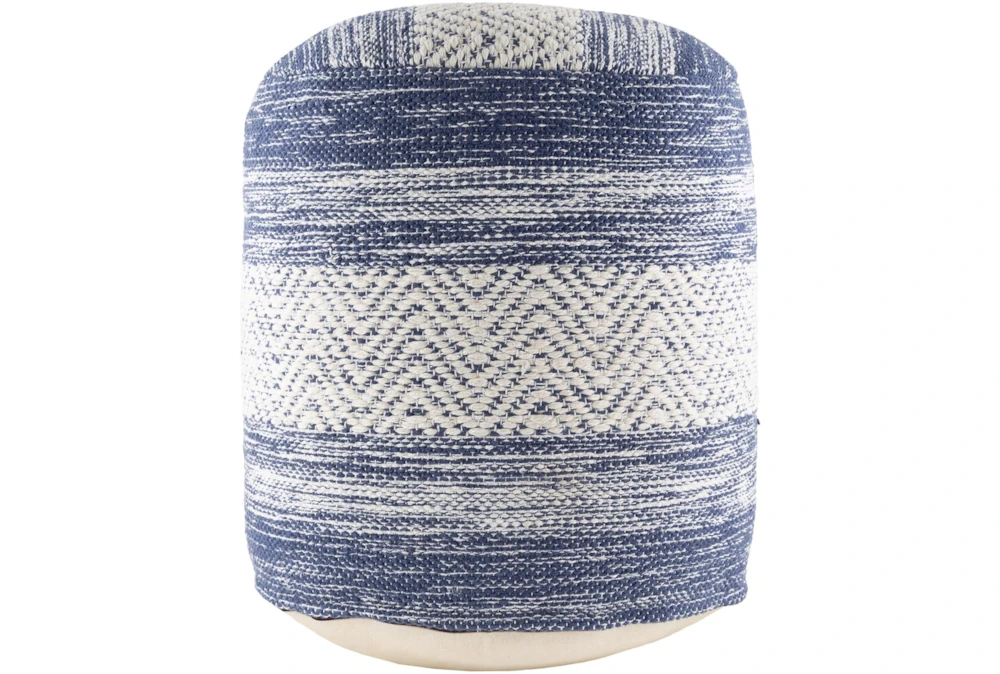 This Pouf-Blue Denim White Stripe is a traditional style product made of 80% cotton and 20% PET fiber, with 100% polybeads and 100% cotton secondary material, featuring a blue denim white stripe color scheme. Its other properties include beige, denim, white, and cream accents.