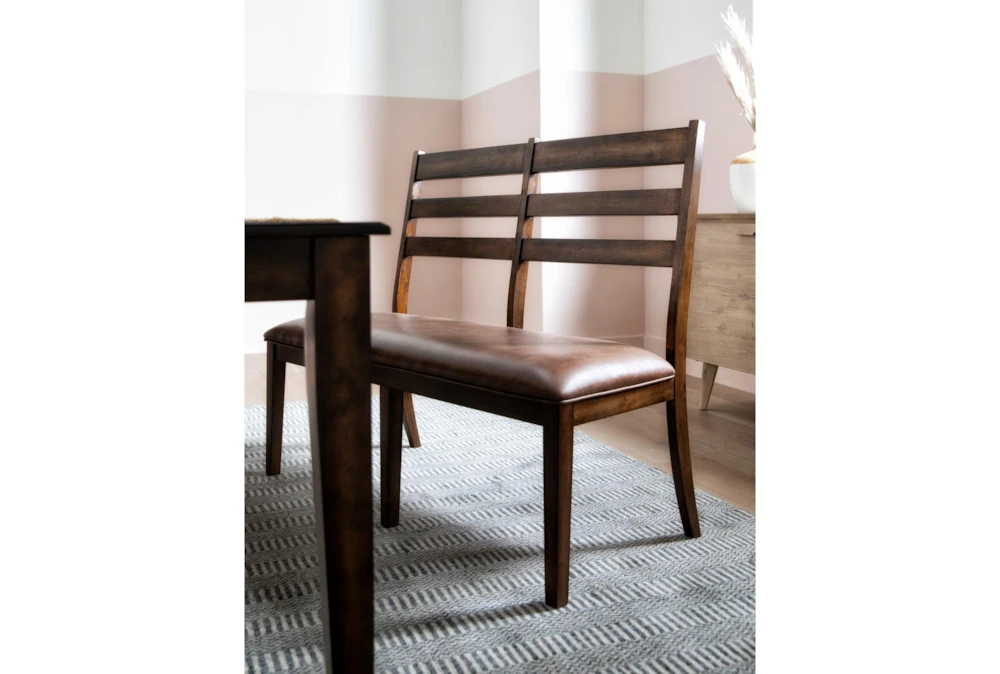 The Rory dining bench takes inspiration from bygone city lounges paired with contemporary elements for a look that’s just as approachable as it is stylish. The premium hardwood and elm veneer construction is enriched by a multistep tobacco finish, while the upholstered leather-look seat brings a ritzy edge. Mix and match the ladder back bench with the Rory dining table and chairs for an effortlessly cohesive aesthetic.