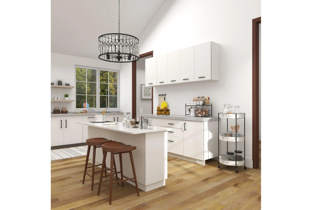 - This rolling cart highlights a porcelain white finish for its shelves and an obsidian black finish for its frame