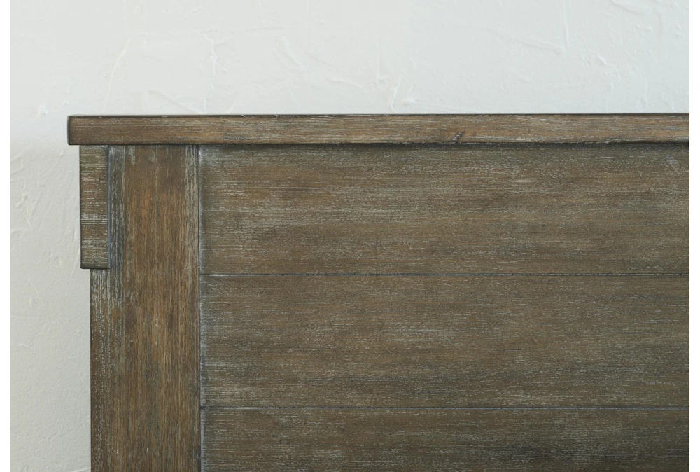 Made with wood, engineered wood, and engineered veneer IN a medium brown wood finish with a complex blend of righ texture abd a touch of white wax.