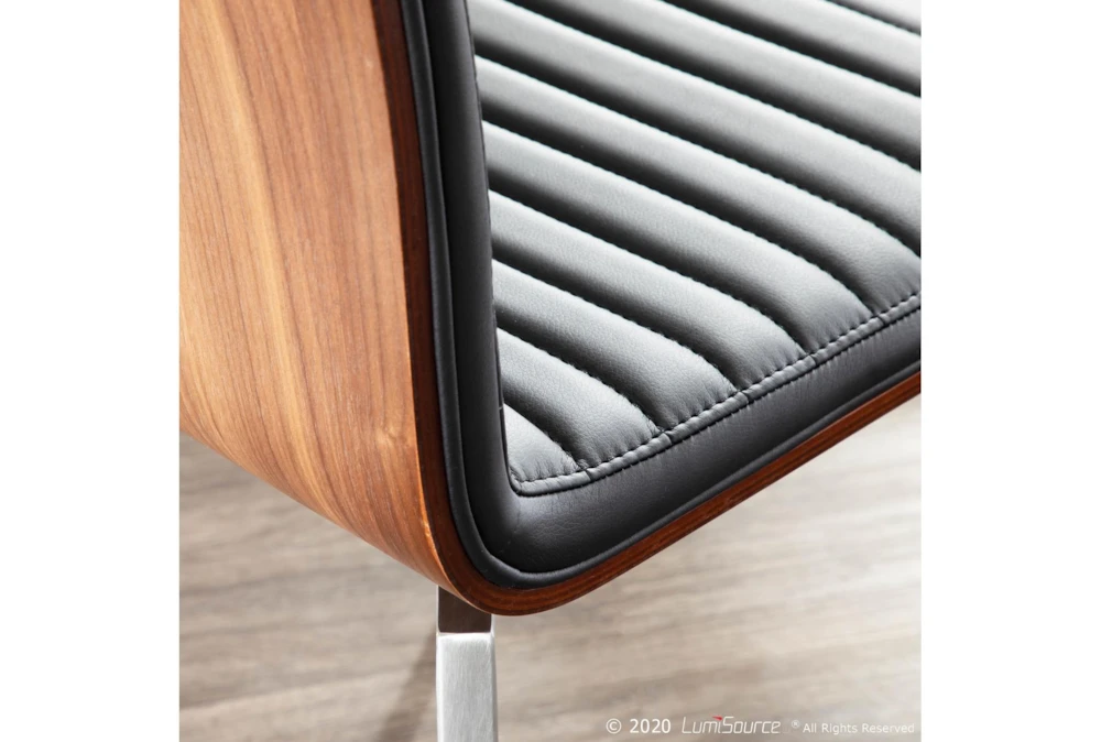 PU Leather, Foam, Brushed Stainless Steel, Wood