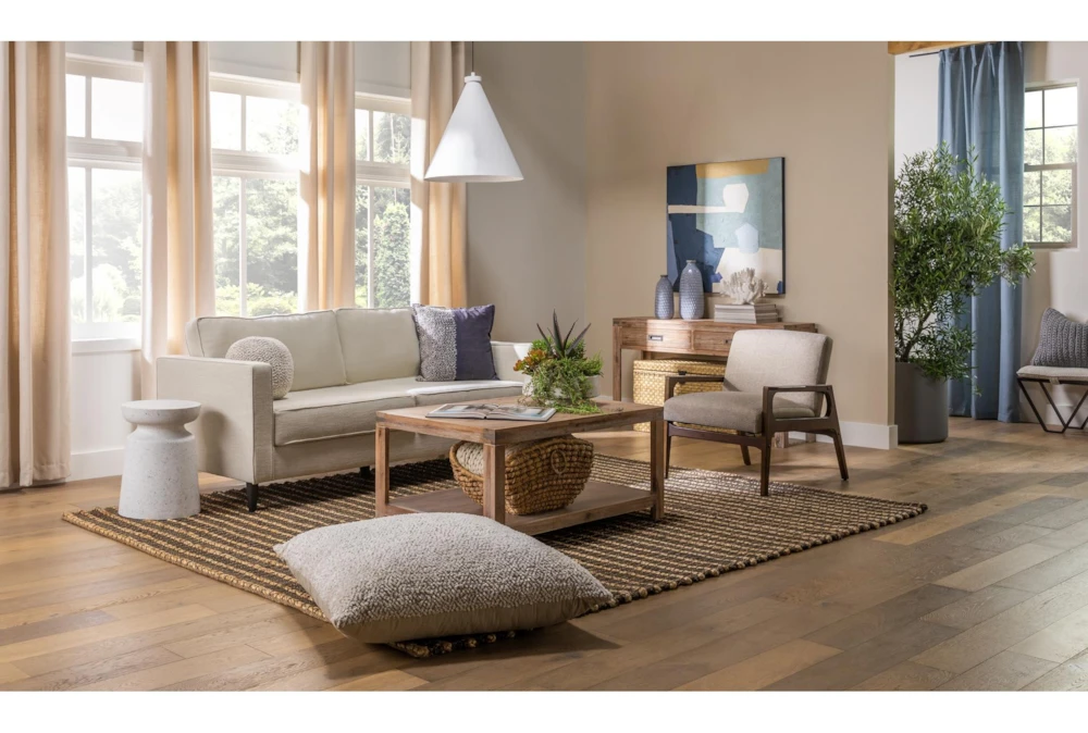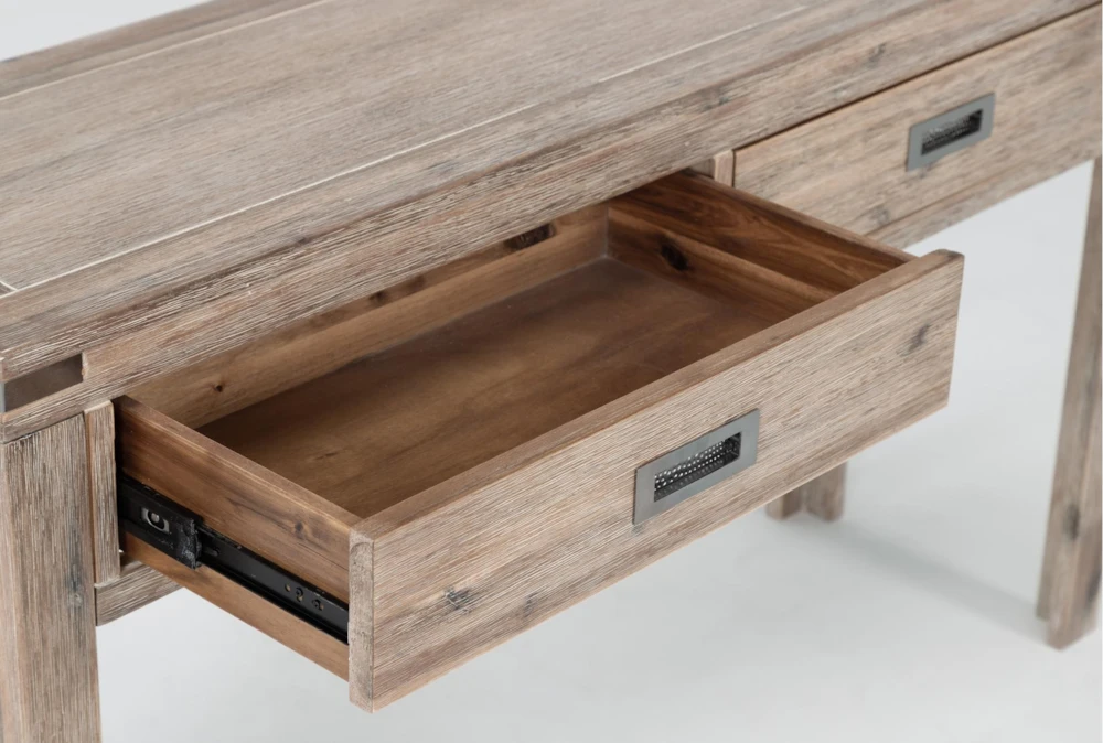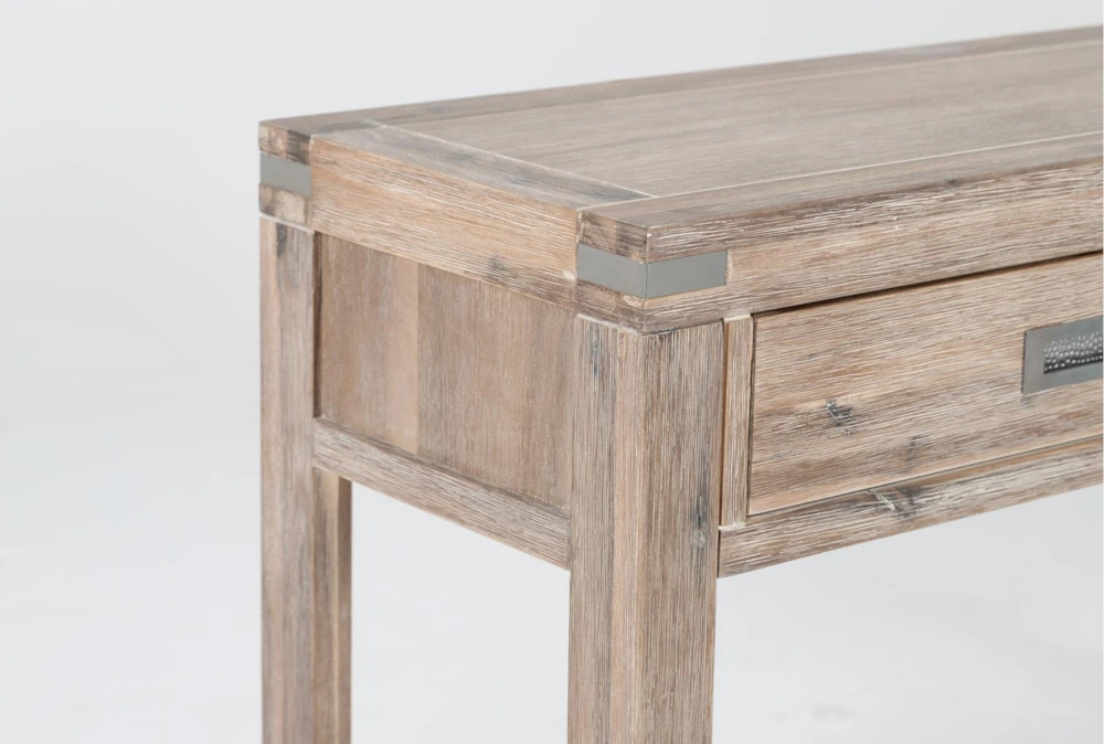 Charming rustic character meets hardworking industrial spirit in our Sandburst occasional collection. Thanks to handsome, sturdy construction and distinctive details, these tables will add quality and personality to your space. Solid hardwood and acacia veneer blend beautifully in streamlined designs that provide plenty of space to showcase your décor. Special touches like a weathered driftwood finish and cool metal accents make each piece a rich addition to your living room.