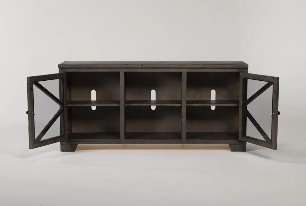 Sinclair II Grey 68″ TV Stand With Glass Doors