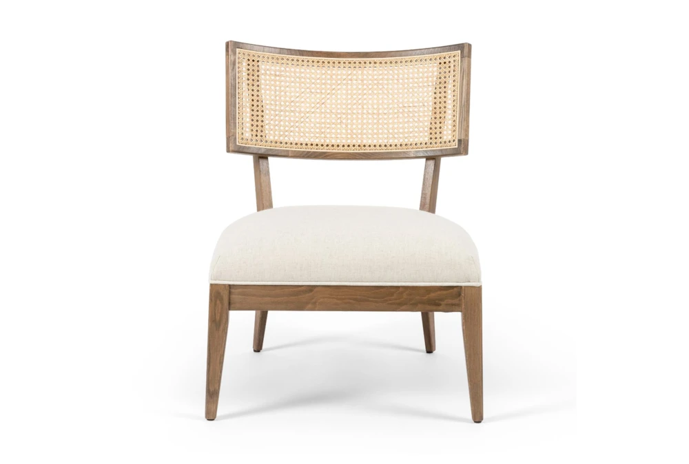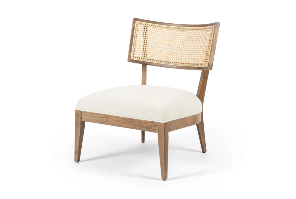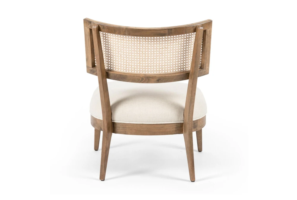 This Solid Beech + Cane Back Accent Chair is the perfect addition to any modern bedroom with its armless design and comfortable back support. Made with high-quality polyester material and accented with wood and wicker, this beige chair is both stylish and functional.