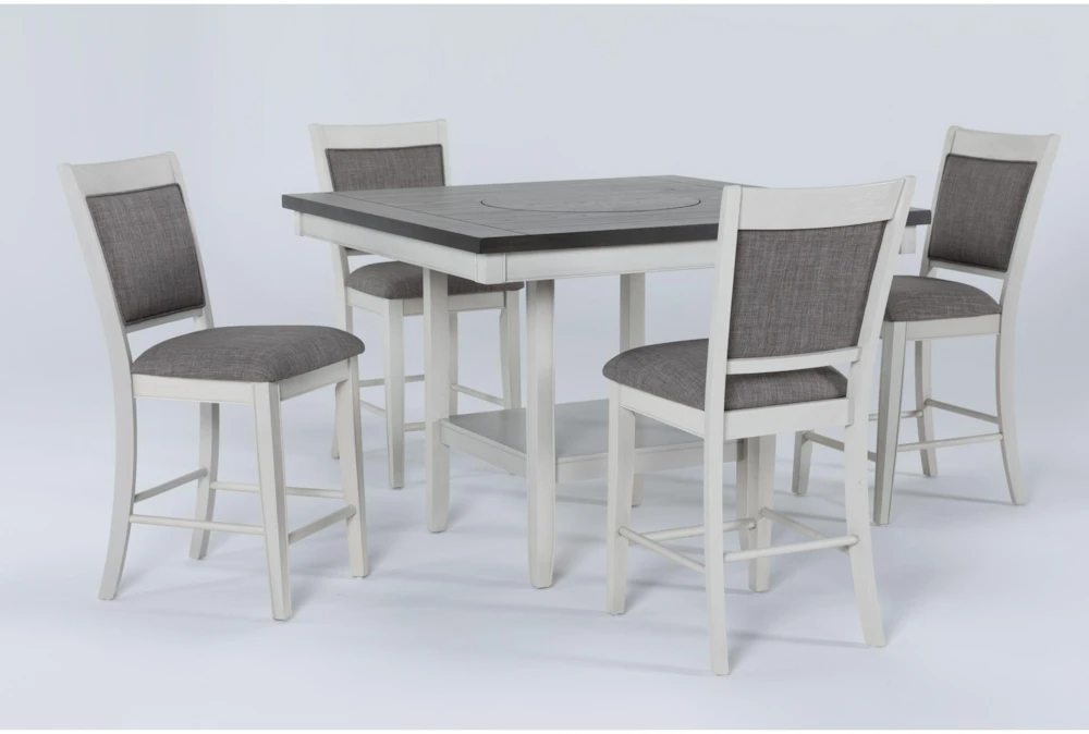 Entertaining is more exciting at our Sutton White counter dining collection, which takes you to new heights with its lofty designs. While the stool features an upholstered back and seat for long-lasting comfort, the table boasts a Lazy Susan center, which conveniently spins dishes around to make them easy to reach.
