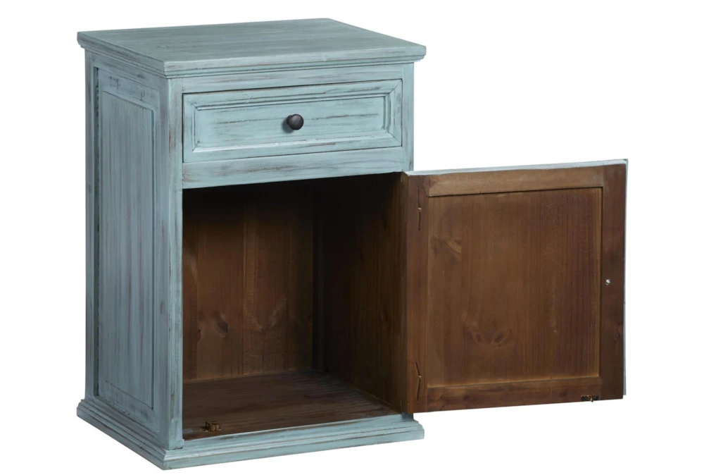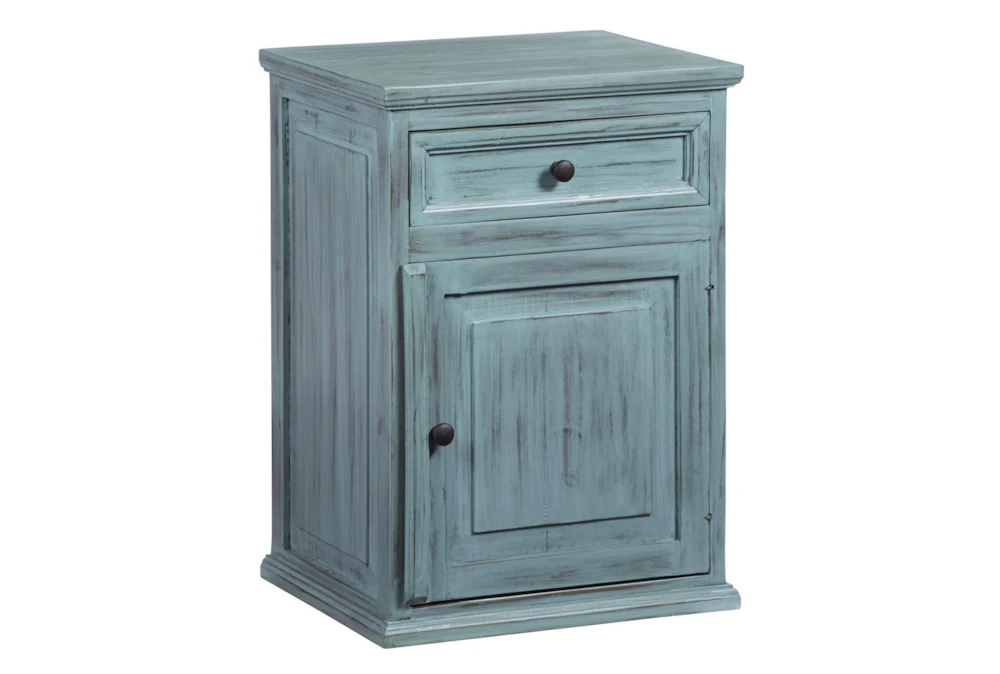 This Teal Chairside Table is a stunning addition to any room with its casual style and beautiful wood material. It comes fully assembled and features convenient drawers for storage.