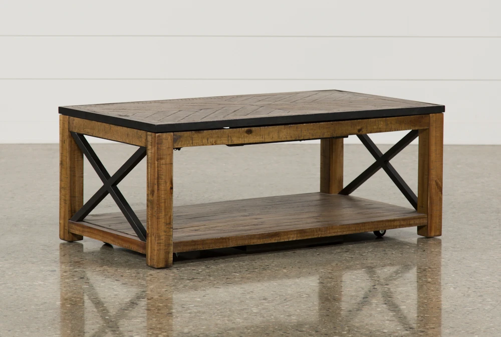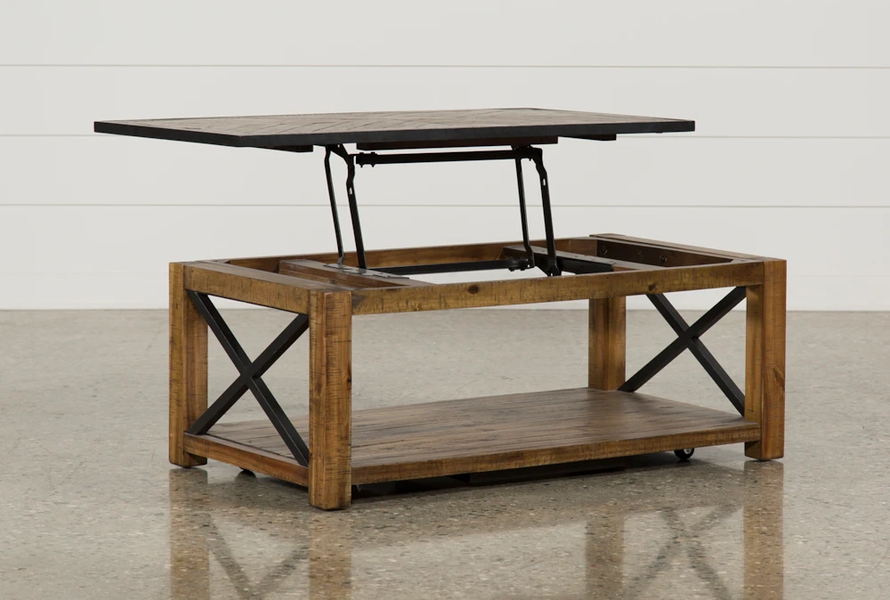 Thanks to a mix of materials, our Tillman lift-top cocktail table can mix with a variety of living rooms – from casual, to rustic, to industrial spaces. Featuring solid wood and sleek metal, this handsome piece boasts a lift-top design and casters that make entertaining and lounging easy breezy. Just add books, magazines and accents to make your statement.