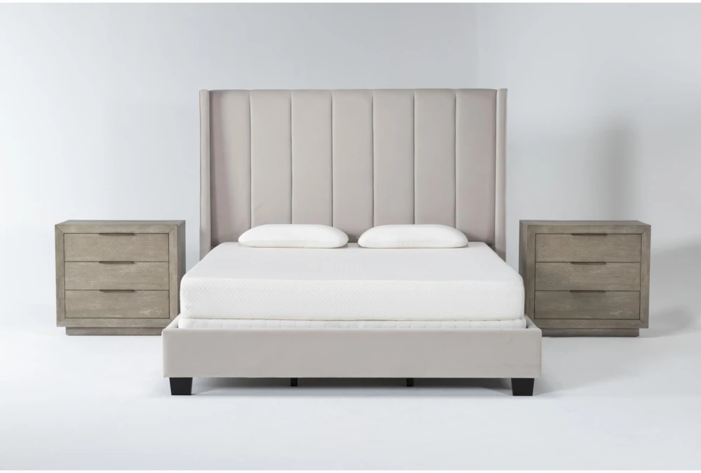 Enjoy endless comfort, sophistication and serenity with our tailored Topanga bed. The grand headboard is the main attraction thanks to a vertical channel-tufted design that adds style and drama to your space. It even features tapered wings and serves as the perfect backdrop for resting your head while reading or watching TV. The entire frame is upholstered in a soft velvet that bears a neutral mushroom hue you’ll love.