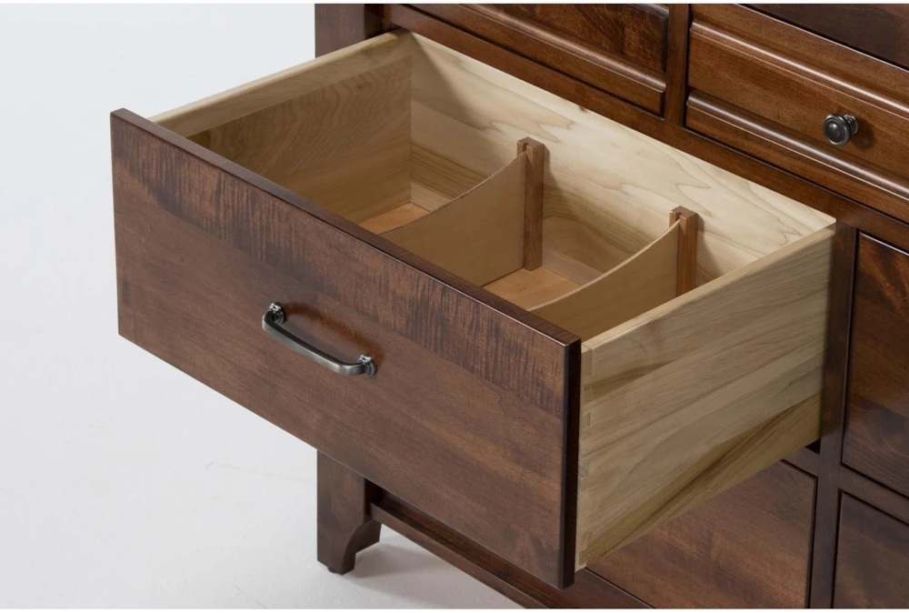 Wake up and fall asleep in a space that brings you peace with the handsomely constructed Westin bedroom collection from our American-Crafted solid wood furniture line. Hand-built by skilled Amish woodworkers who use time-honored techniques, each piece is signed by the artisan and showcases the natural beauty, quality and integrity of solid brown maple. Meticulous attention to detail is obvious in every feature – from dovetailed solid wood drawers, to mortise and tenon joinery to full-extension side-mounted ball-bearing guides that ensure smooth operation. Extra special touches include brushed pewter hardware and the headboard’s herringbone design, which is rich with one-of-a-kind character. Available in multiple finishes, you can select the perfect option for your space.